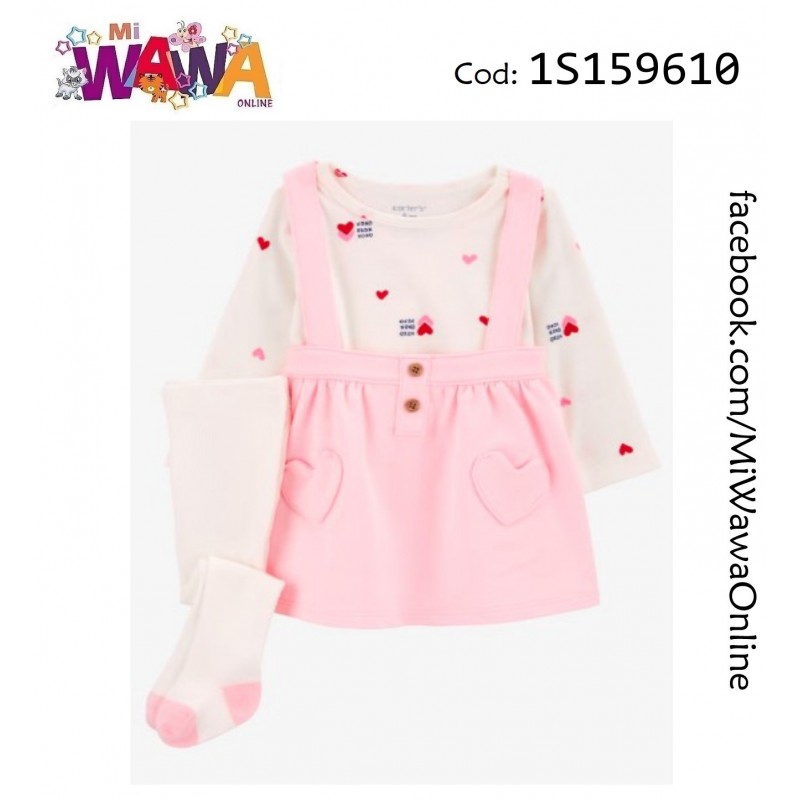 [M2] 3pz Pantys Faldita rosa corazones
